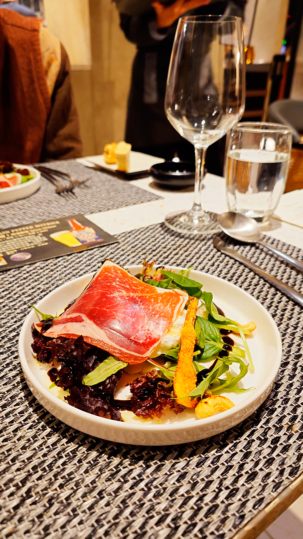 主廚沙拉選用南屏山生態農場的新鮮生菜,搭配生火腿與布拉塔乳酪,油脂的香氣與滑順口感,與爽脆生菜形成完美平衡;再加上果乾與堅果點綴,層次豐富,無論視覺或口感都十分迷人。